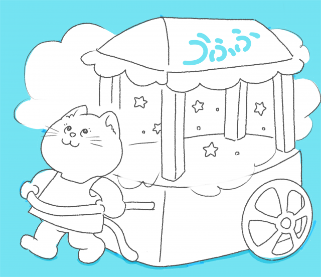 『宣伝係のねこさんが屋台を引いてやってきます。